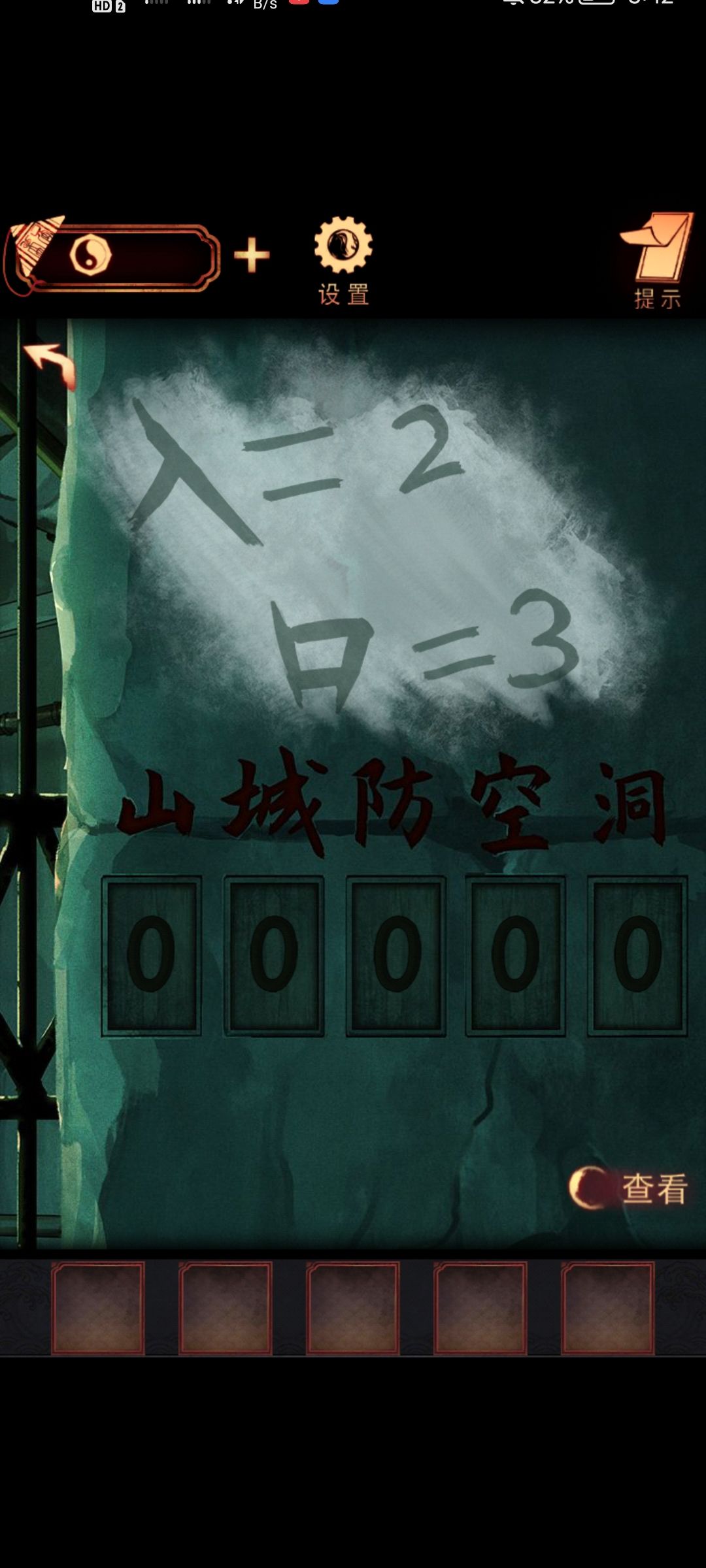 前往防空洞,点击防空洞右边的柱子,使用粉笔,看到入=2、口=3,推出开门密码是各个文字的笔画——39689