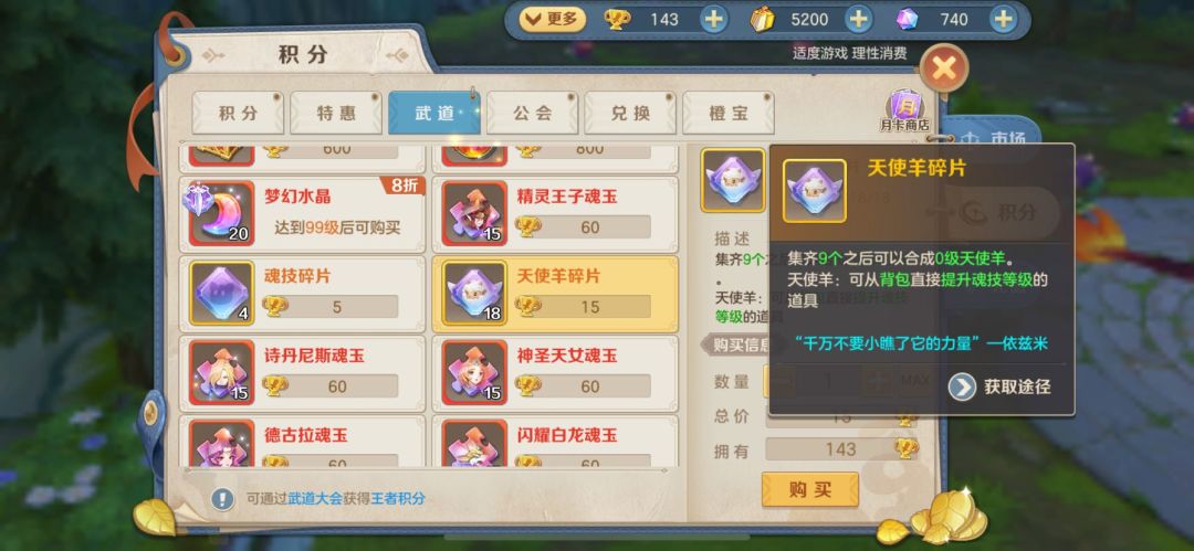 3)武道大会积分获取【如果你的梦幻符文没有毕业,优先换魂玉,水晶】