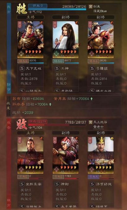 总结:可以看到这个阵容拥有非常恐怖的爆发力,有不少几十战损就打赢对手的战报,可以说是相当的舒服!基本上武将达到半红水平就可以玩,就是战损可能会稍微高一些,没那么容易做到直接秒人爆头!那么这个队伍是否有缺点呢?那就是规避队伍和盛气青州枪算是比较大的天敌,当然也不是没有赢面,关键是这两个队伍还是比较少的,实战遇到多多避开就好了!