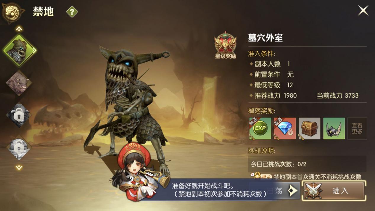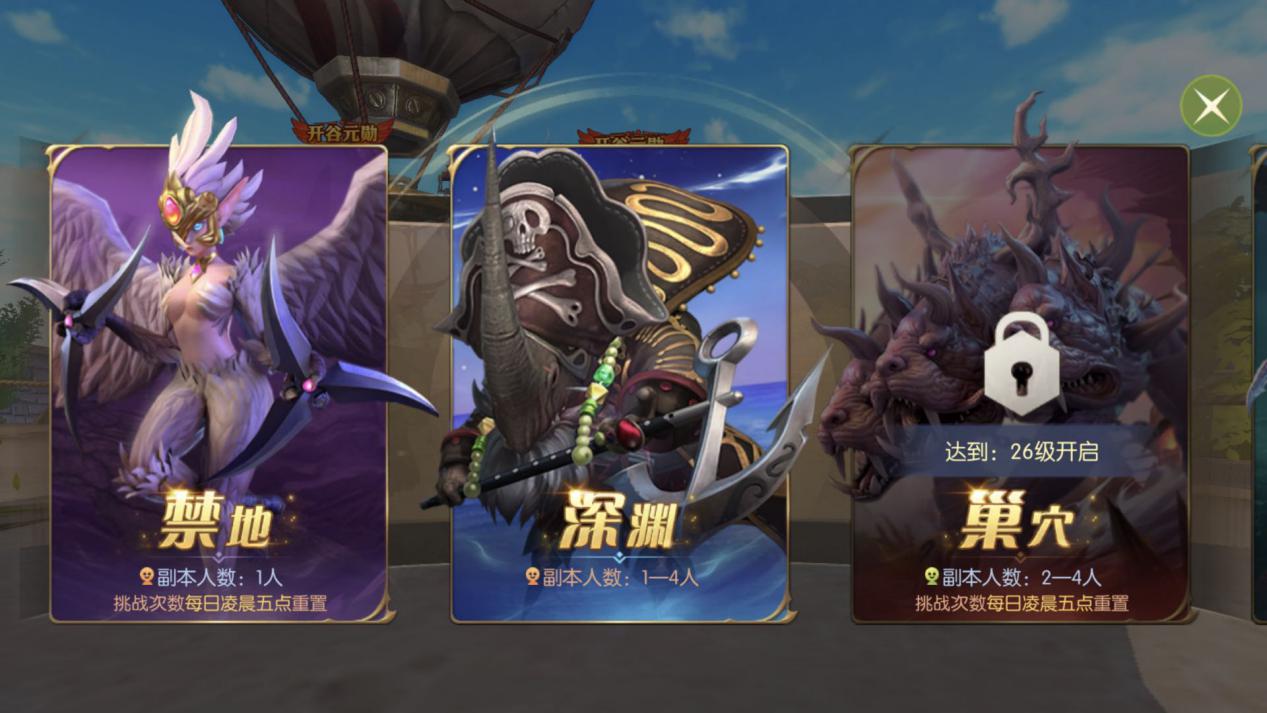 与活动一样,副本在游戏的正上方,目前游戏更新了四个副本。