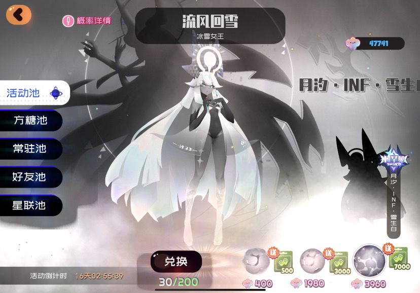 上次月汐池抽了170终究还是错过,这次30抽出了,加起来刚好200抽,我大为震撼。