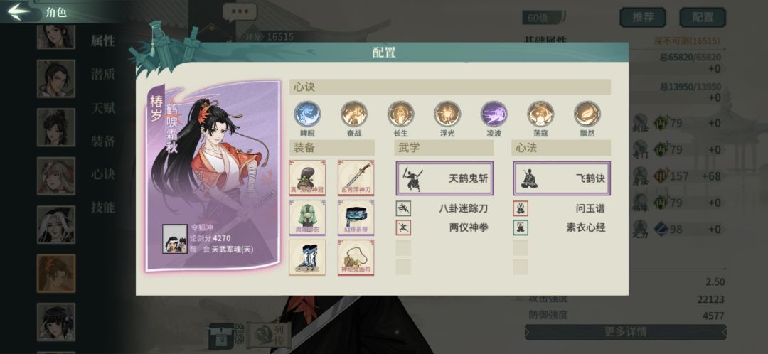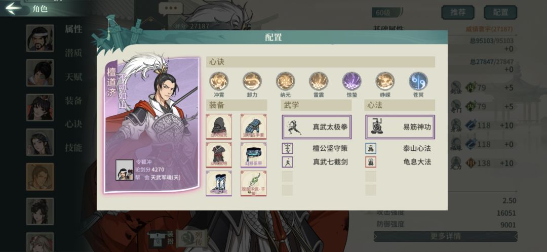 洗练悟性满66,带雷震是为了250根骨配合太极拳和卸力达到满减伤,这个老檀很强我的建议是二选