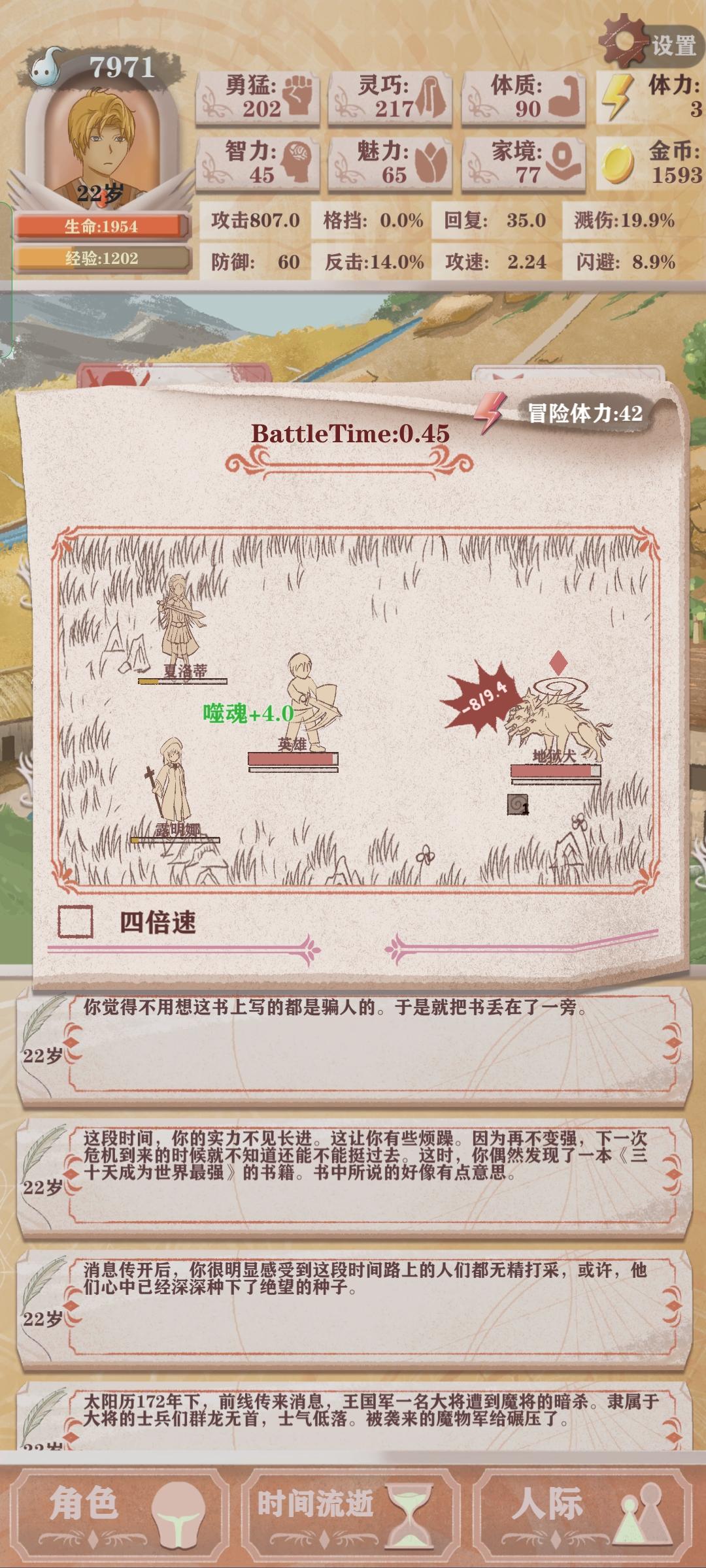 天赋的话就技能之神+剑勇,再加一个垃圾天赋。主要是23岁就面对魔王,真是太意外了,兽人都没刷几下。再有三次死里逃生也过了,大意了。以前的档最少都是26岁打魔王,这个是可控制的吗?大佬教一下