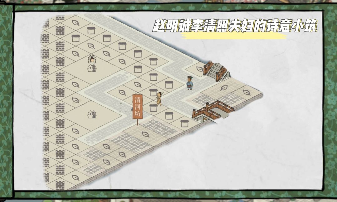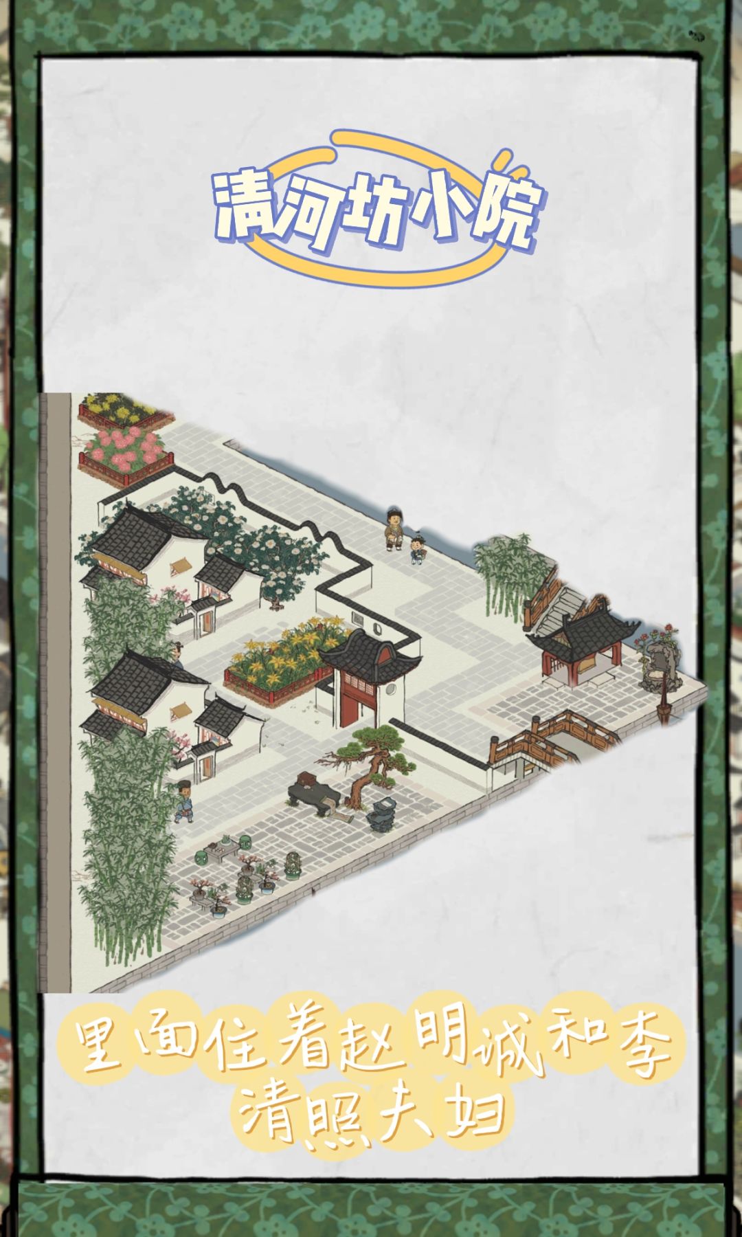清河坊里有赵明诚李清照夫妇的爱巢。他们经常在小院里的画图桌上讨论金石古器。他们还会在小院里的休憩说上下棋谈笑。