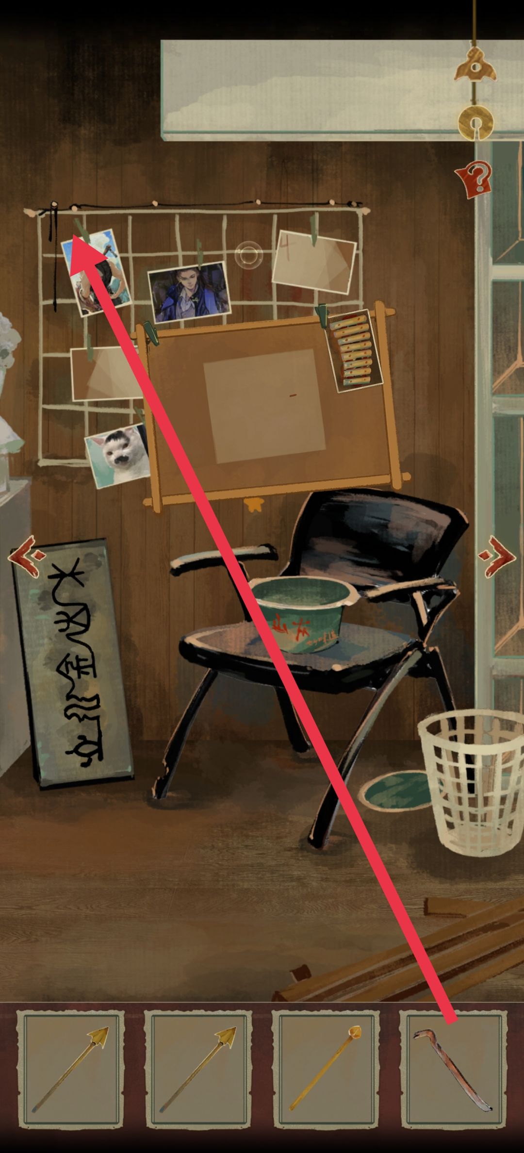 然后拆开青龙偃月刀获得锤子和点火器,点燃点火器,在左下角使用可以获得密码锁的密码