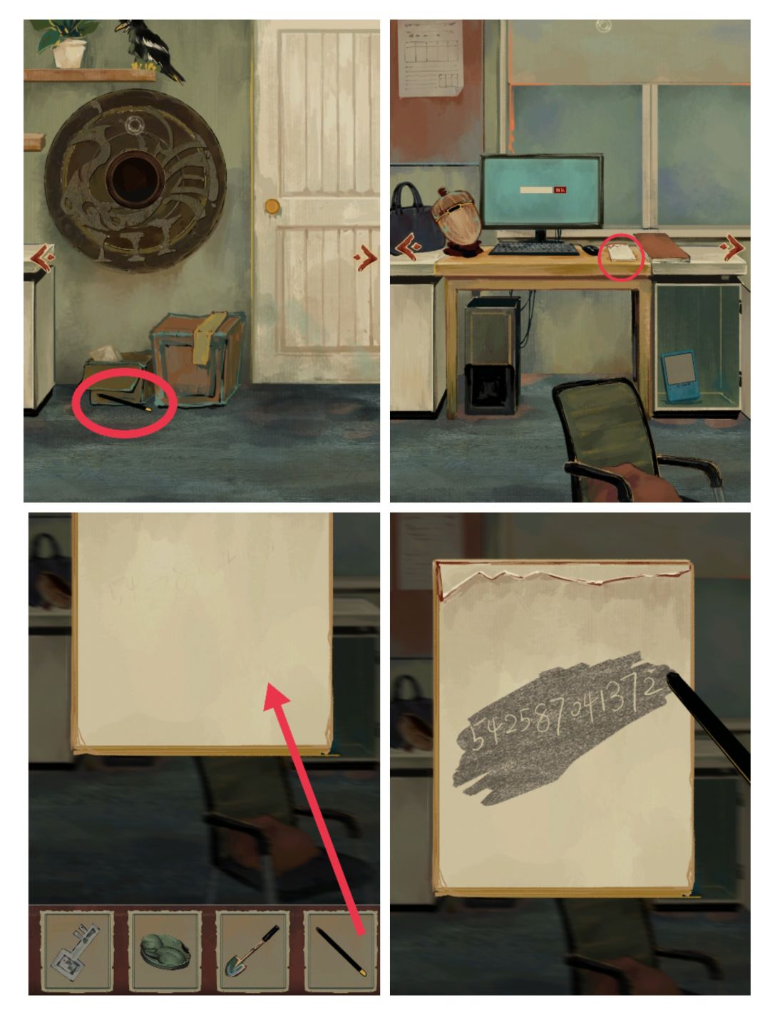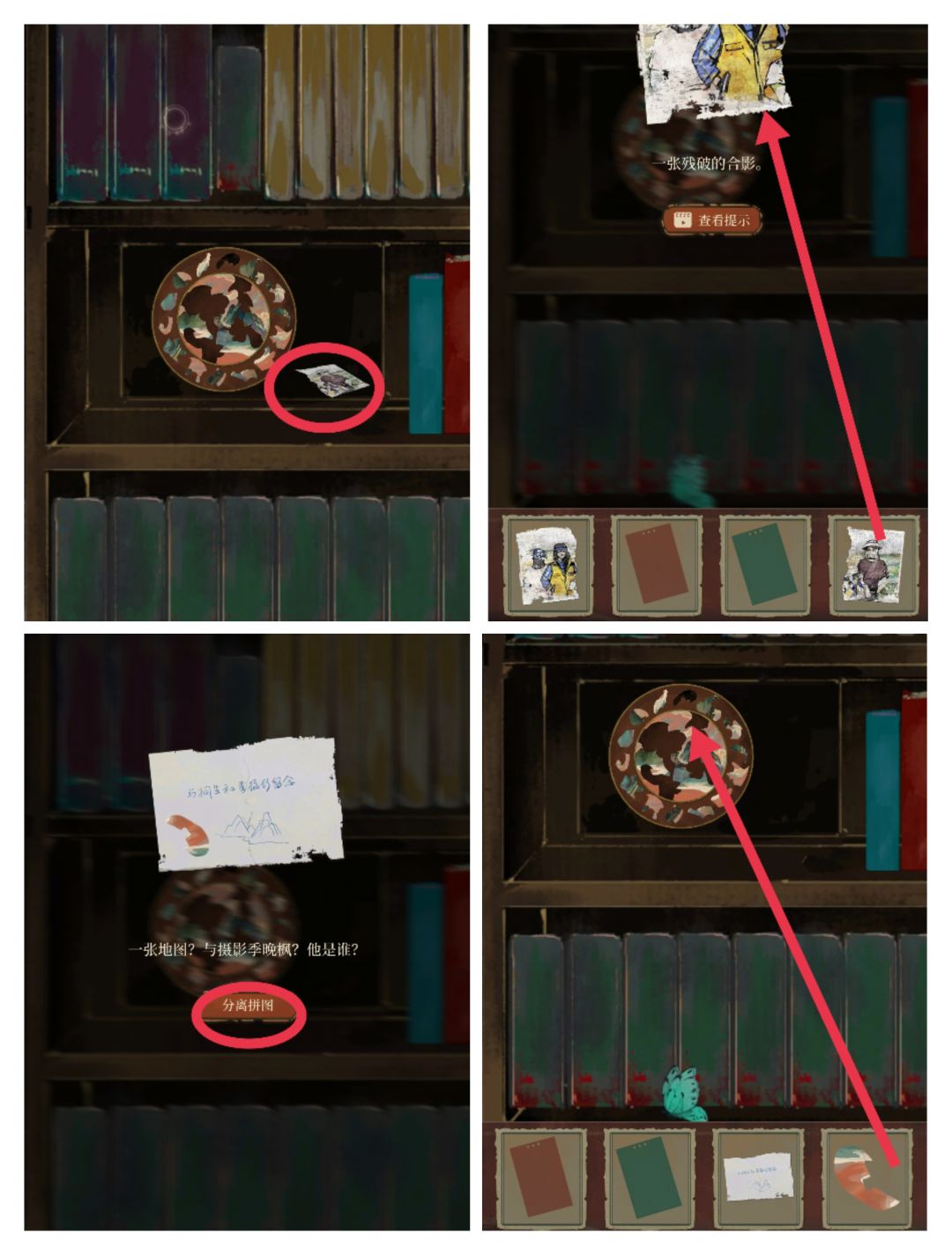 用钥匙打开柜子,这三本书都可以点开的,收集半张照片和红绿两张暗记板