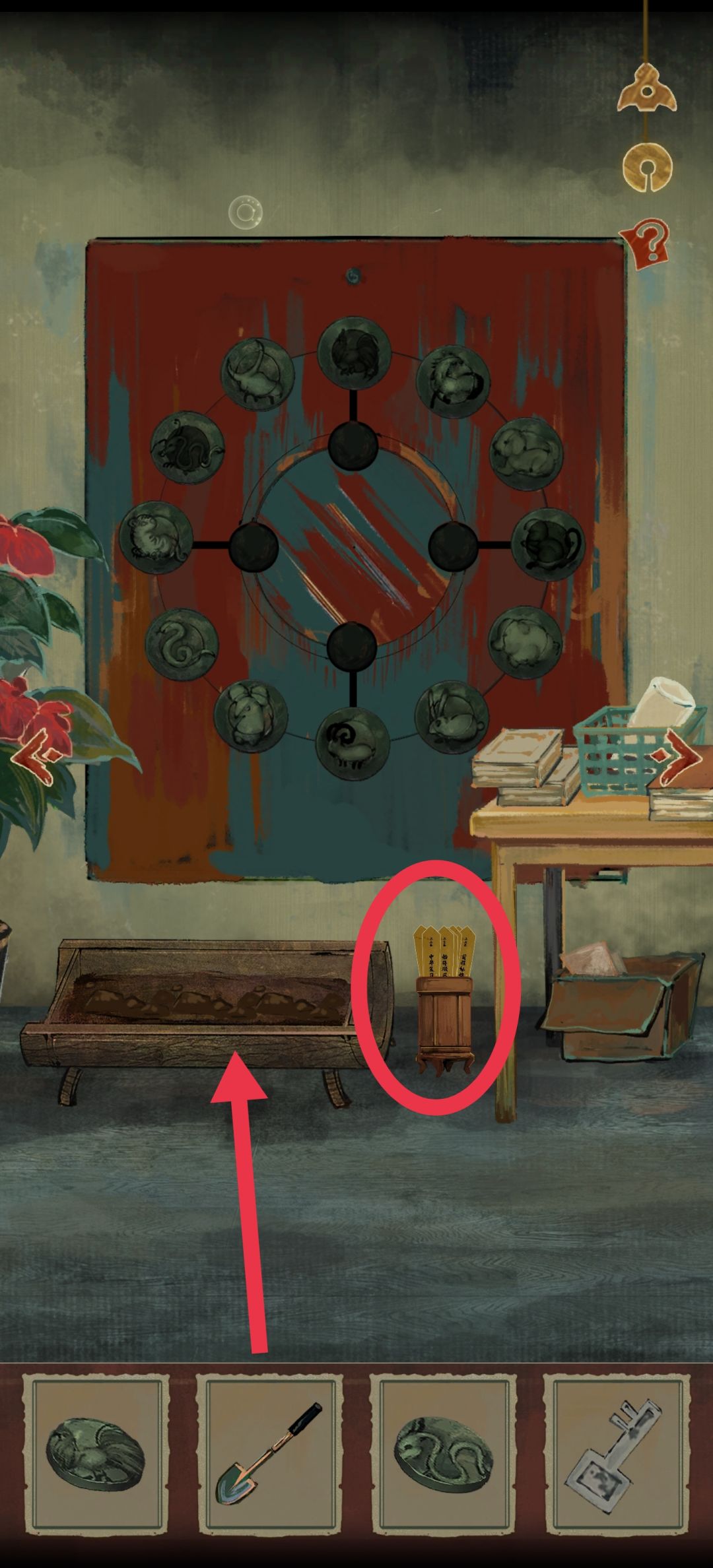 将符咒安装到对应的生肖上,旋转里外盘(不是转符咒,转符咒是转不动的)然后按照十二生肖的顺序排列,将鼠对准最上面的点(这里没截着完成图),就可以打开机关了