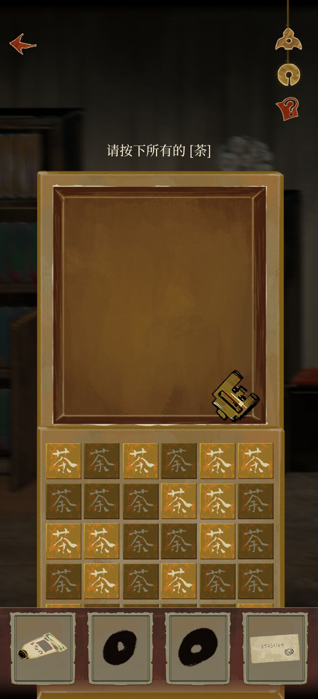 进门以后打开柜子有个小游戏(是谁看成了一键三连),就是将三个一样的块块点出来。进去以后拼手速截个图(题是随机的,所以我的截图不具有参考价值),第一次没有截到也没关系,重置以后可以再来一次,实在截不到可以一个一个点开找,再不行还可以跳过(狗头)完成以后获得鸡符咒(bushi)