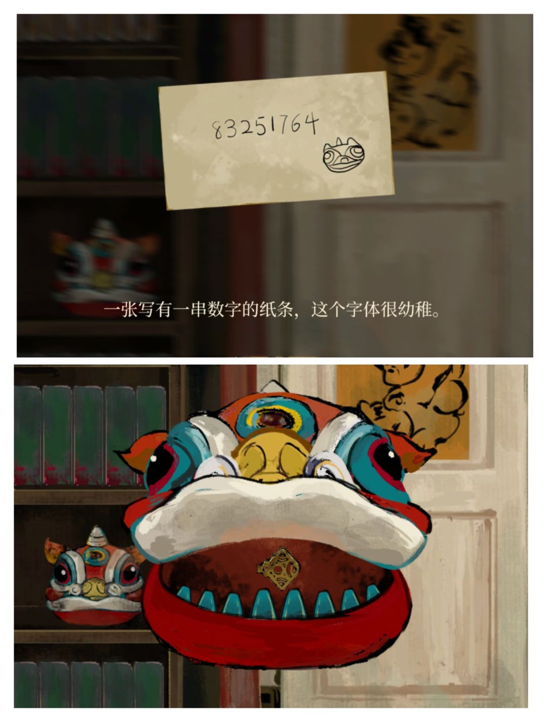 根据这个纸条去按那个年兽头的牙齿,获得另一个钥匙组件