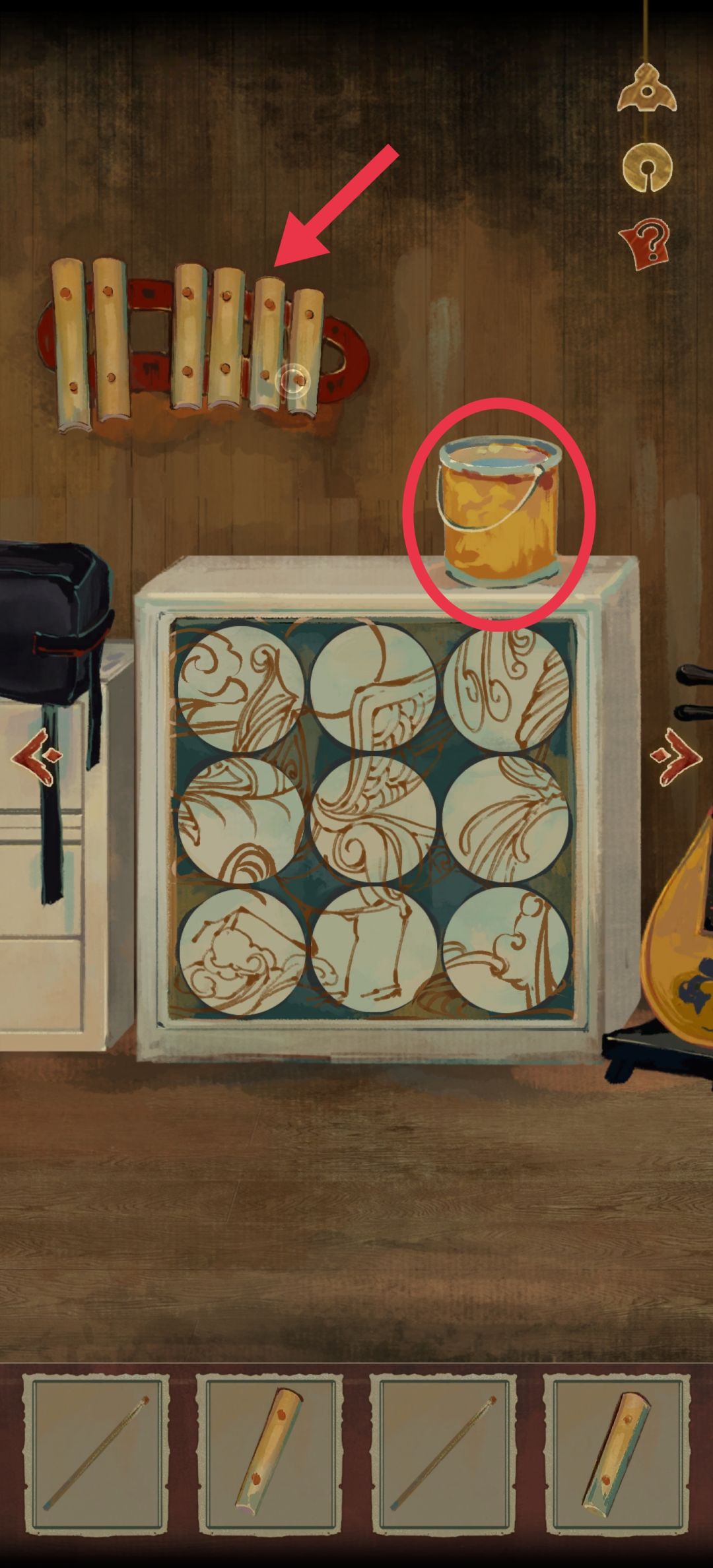 然后将锤子与木琴组合后,按35784的顺序敲击木琴,可以获得一把剪刀