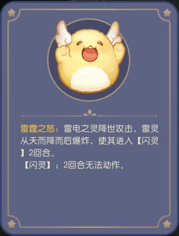 火雷雷 → 【雷霆之怒】:触发“闪灵”效果(无法动作)两回合。