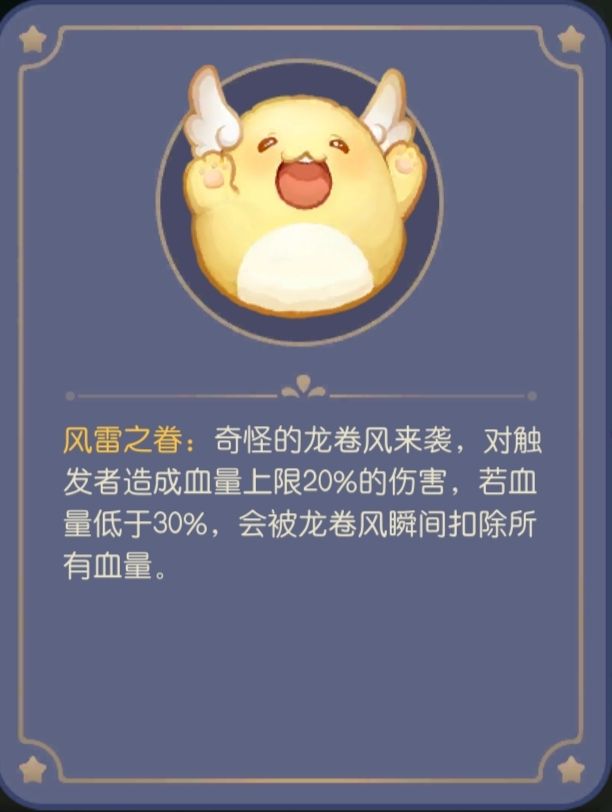 雷雷雷 → 【风雷之眷】:造成最大血量20%的伤害,若对手当前血量低于30%,将直接斩杀。