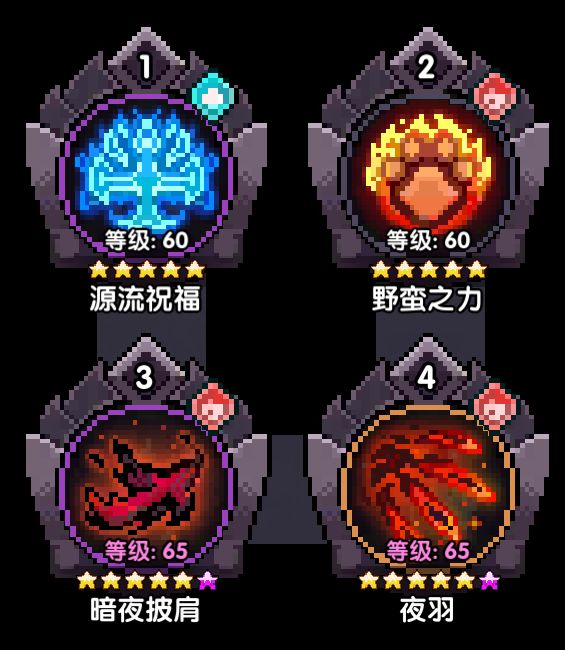 防具魂卡:赤耳恶魔;迪拉肖;烈焰牛魔;火纹绵羊(左上,左中,左下,右下)