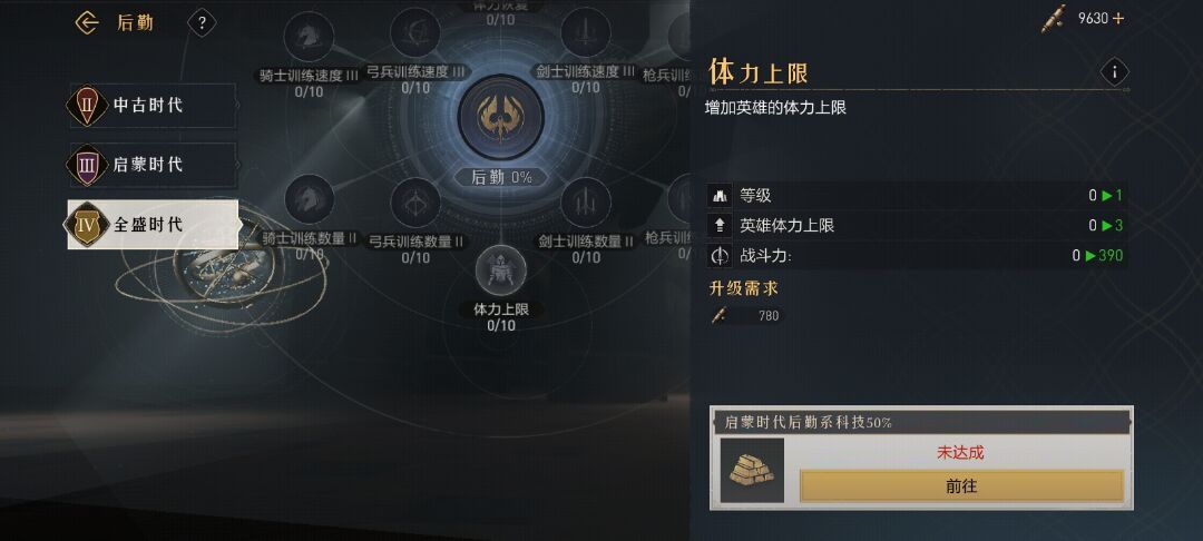 在学院的各项科技中,战争系全阶段适用,经济系一般前期有用,后勤系一般后期有用,而城防系科技通常只有小号、资源号才点。如果在S1赛季末期,我建议大家暂缓战争科技的研究,先把经济系的中古时代、启蒙时代科技点满,以便新赛季开荒;如果是S2末期,建议把后勤系的中古、启蒙科技点够50%,然后研究全盛时代中的体力恢复和体力上限这两项。