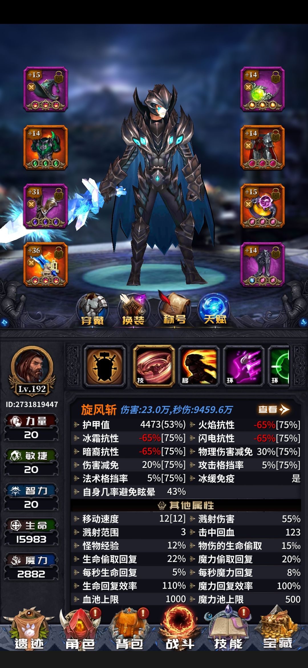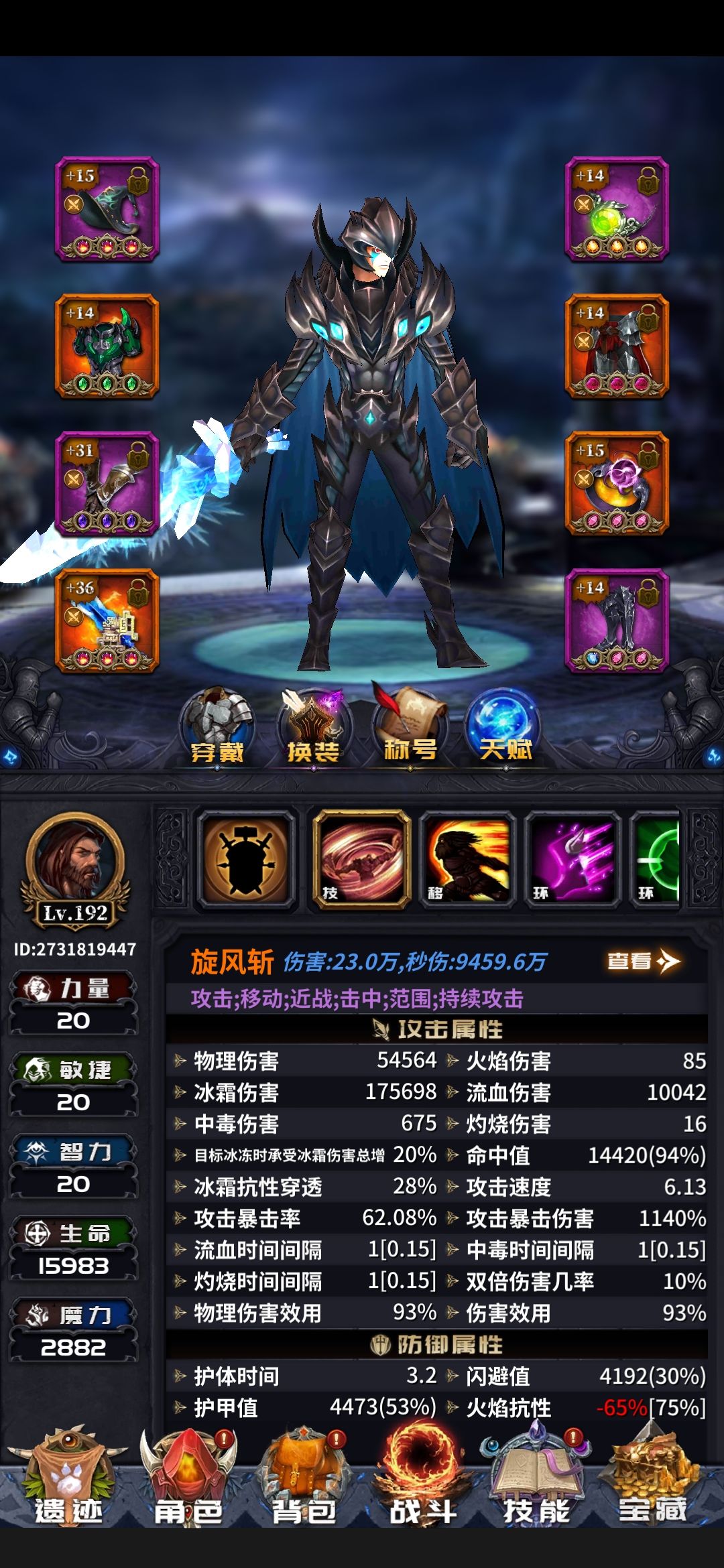 上图之前还是讲一下这个版本的旋风斩是吃攻速和移速的某些什么几万血的没卵用。该秒害得秒。这个贴应该是这个版本最后一个帖子了。希望大家看完我说的话。天赋我再强调一下。正中把心和异能打击可以互换看你需求。鞋子也可以优先洗冰冻几率但是移动速度一定要to词缀。而且能洗双移速最佳。手套以额外转冰和攻速t0优先。这样配合我现在的装备很轻松就能达到满移速和6攻速。3的攻速和6的攻速跳字频率不是一个等级的,亲测过了。当前版本在不把攻速天赋点完的情况下6攻速旋风斩已经是极限了。而且按我现在这套装备只用洗四件紫装。如果头换成橙色护体增伤头那就更省事。前提是你范围要够。辅助技能暴击率可以酌情换成物理伤害。前提是你暴击率够。自己灵活运用好吧。橙装就是115范围戒指。115的至高守护裤子。和175的衣服武器。还有一点,装备的基础属性选择尽量以闪避为主。护甲堆了也是被秒还不如堆闪避,说不定就miss了哈哈。耐心看完的老铁们记得关注点赞。咱们下个版本不见不散。材料已经开始攒了。下版本我依然会第一个吃螃蟹。大家游戏愉快。