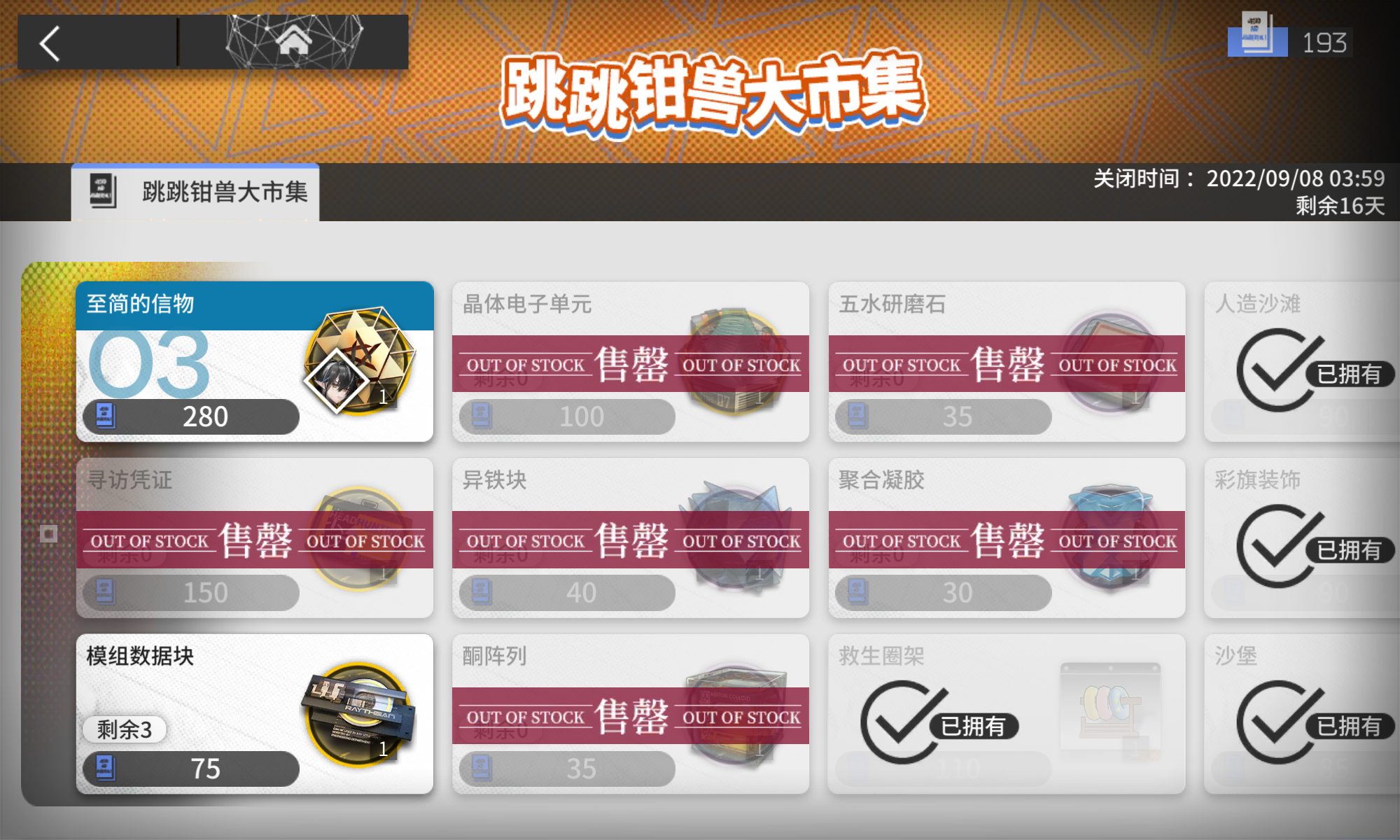 商店兑换:就目前我这个情况,无氪玩家在活动期间完成所有首通任务后全力刷取材料关,不过多在突袭浪费体力不碎源石是可以全部换完的。