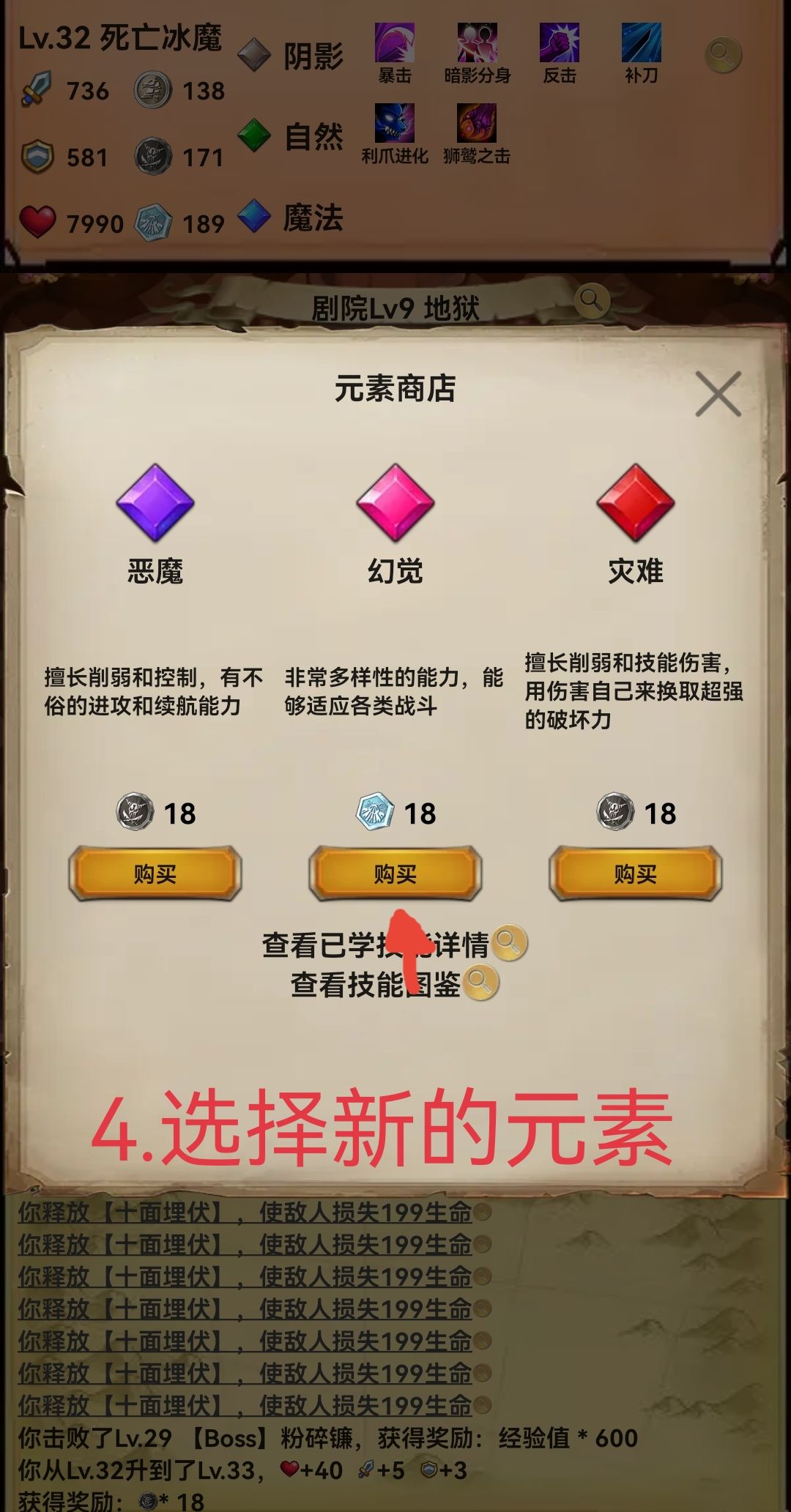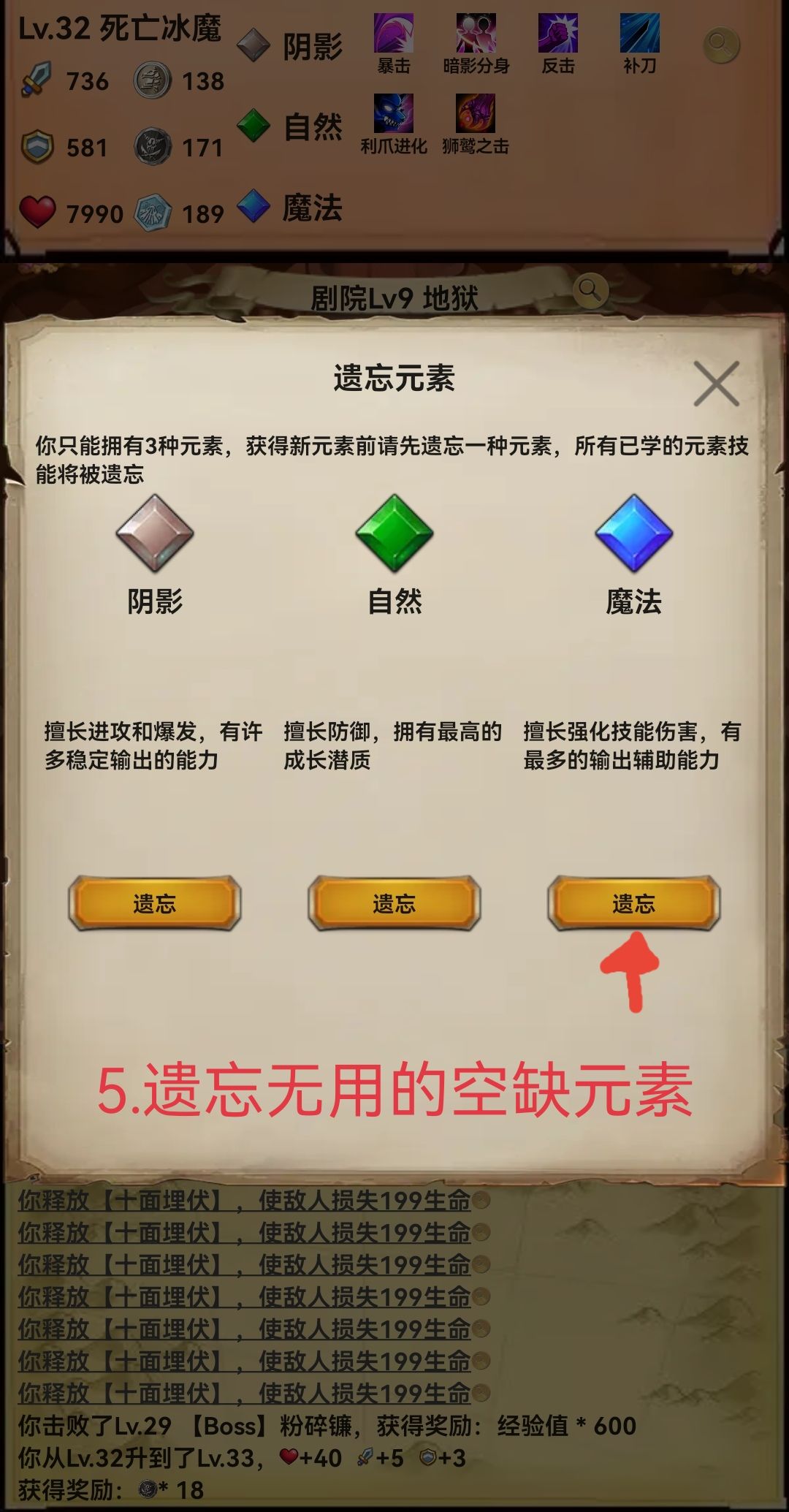 5.再次刷到元素商城时选择新的第三元素并遗忘旧的第三元素