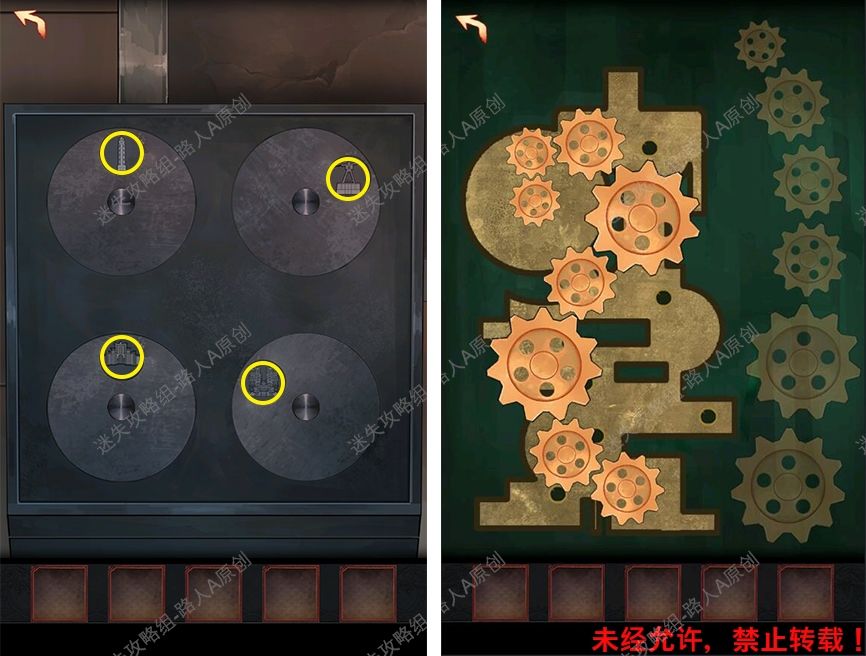 55.分别查看4个房间的灯盏,按照房间顺序排列图案,得到门锁密码。55.1、55.2