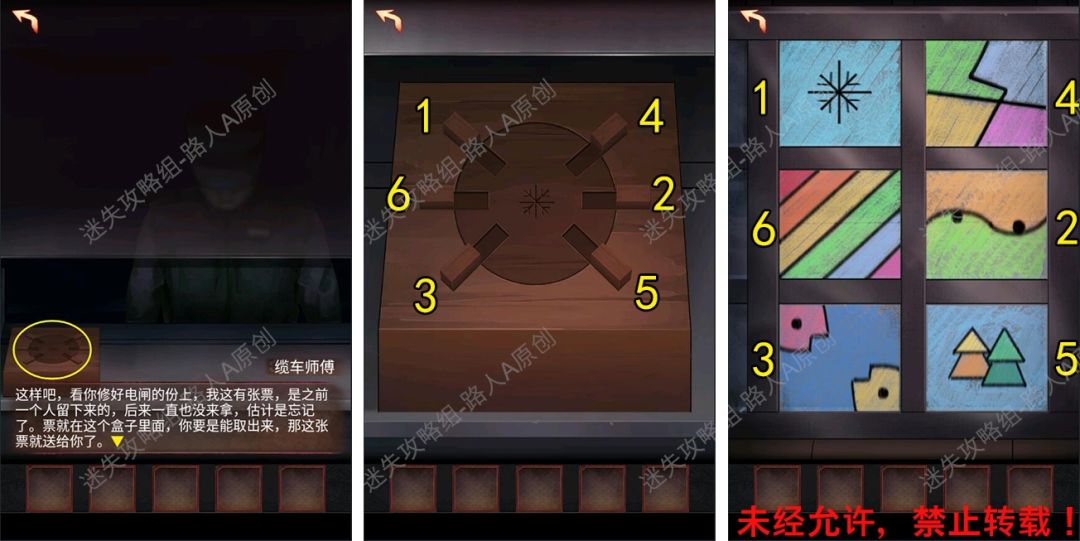 42.再次和缆车师傅对话,打开木盒取出【缆车票】。(根据彩色玻璃的颜色数量排序)42.1