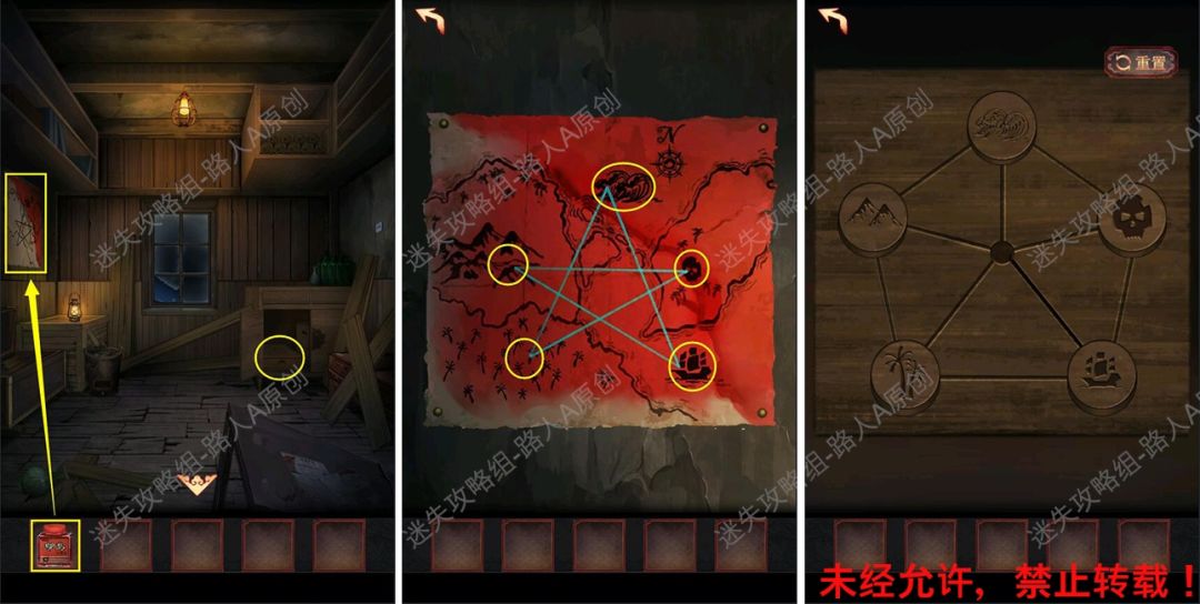47.对地图使用【红墨水】,根据五角星的提示,打开柜子里的木盒(将图案调到对应位置),得到【玩具灯】。47.1