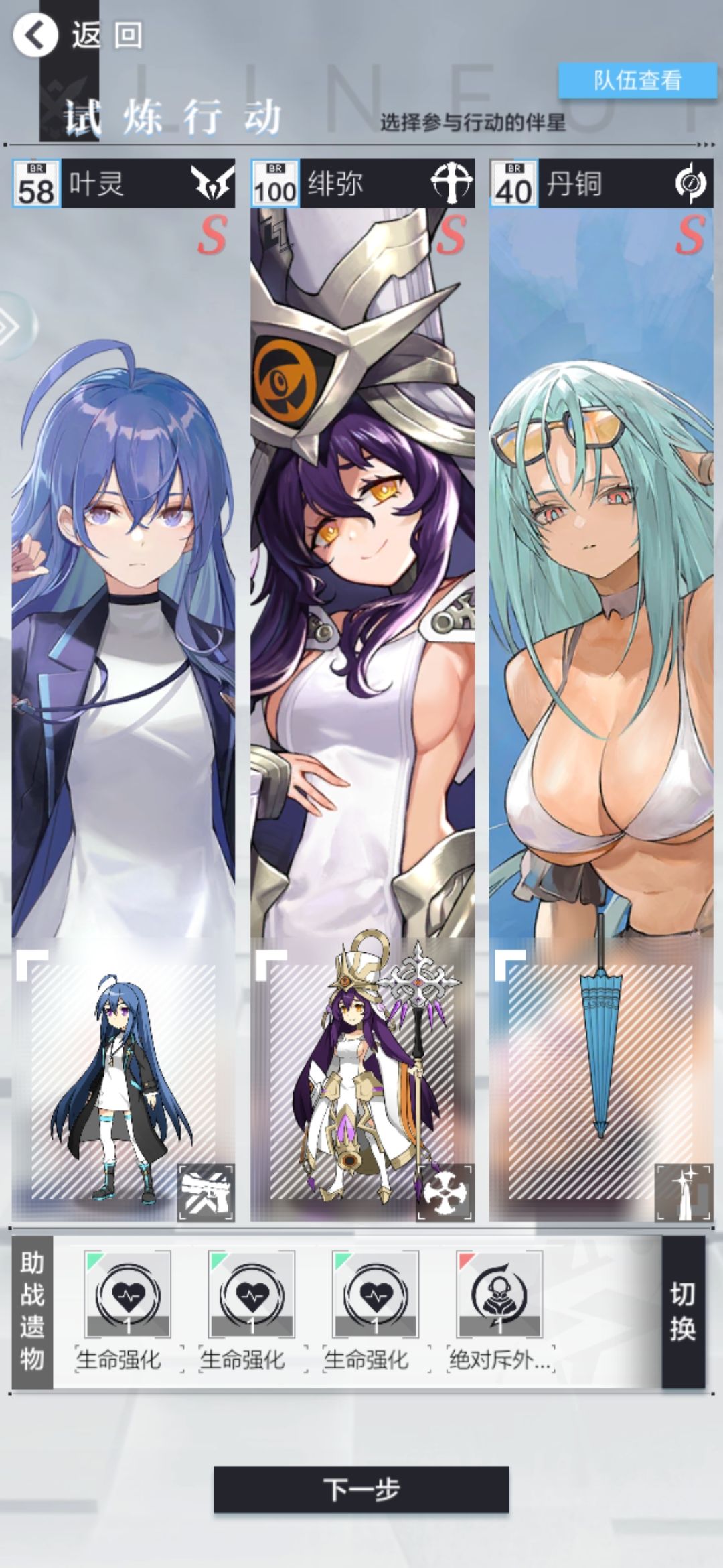 打开试炼界面,把叶师傅拉入队伍,顺便把她的血包绯弥一起拉进队伍。