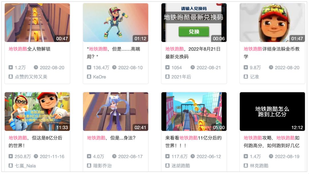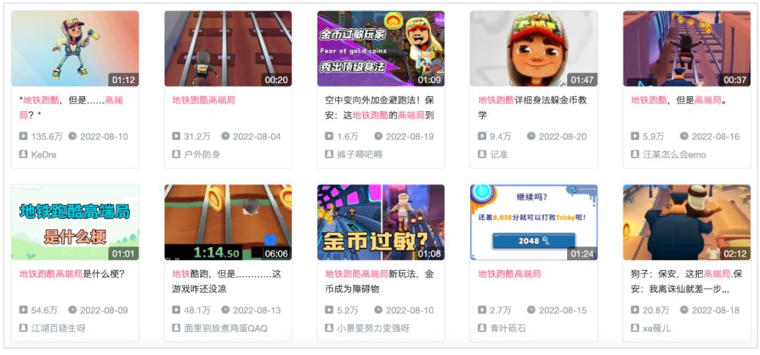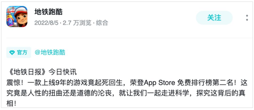 当然啦还有一些其它原因,比如《地铁跑酷》官方时不时冒泡发视频,有几个还挺火,这也扩大了《地铁跑酷》tag的曝光度。
