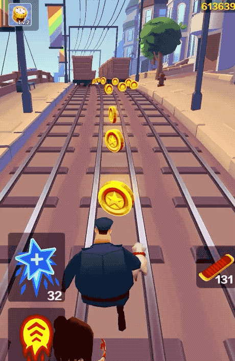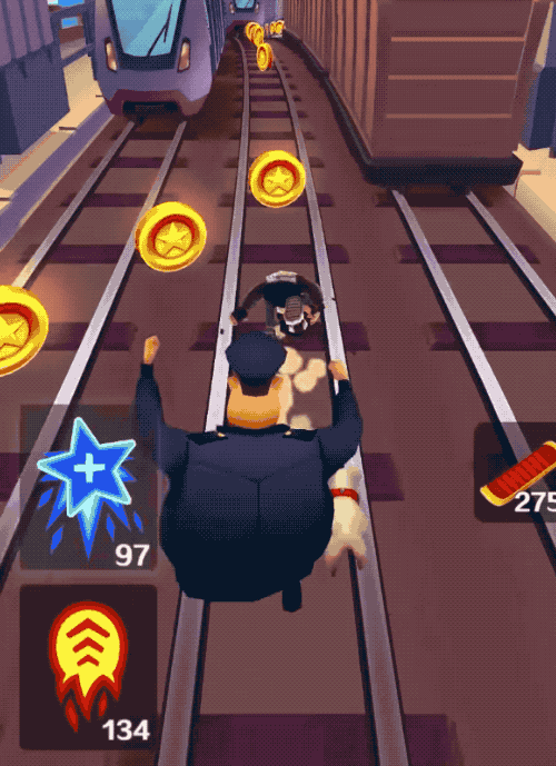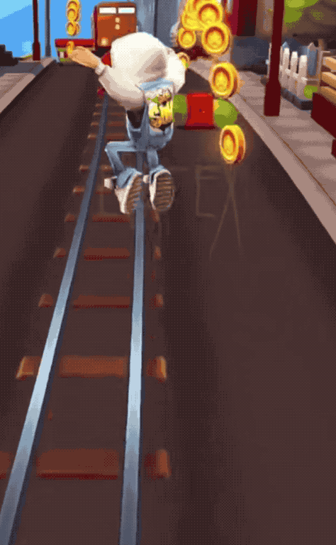 这只是最基本的技巧,进阶玩家已经学会利用游戏的机制,比如在来不及跳跃的时候一头撞地铁上,就能避开金币路线;