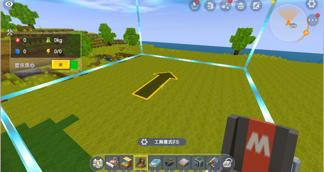 这样一个简易的飞机就制作完毕啦!生成载具后尝试一下,首先坐上飞机,按下推进按键: