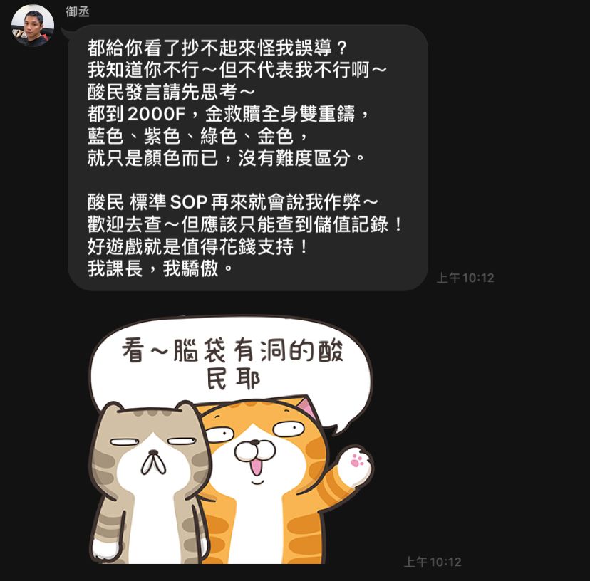 御丞:『人要比車兇,不要讓速度限制自己,治癒彈跟不上豬 是你不夠兇』