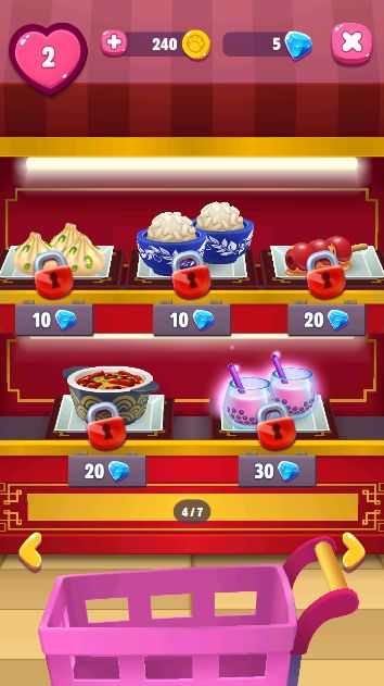 因此,我们不能等到安吉拉饿肚子才去看我们的食物资源有多少。我们可以点击后面的冰箱进行左右翻页,查看我们想要购买的食材。游戏中是有非常多的食材可以选择的,特别是需要用钻石解锁的,都是特别有特色,看着很有食欲的一些精美糕点和菜式,快带安吉拉收集各具特色的美食吧!