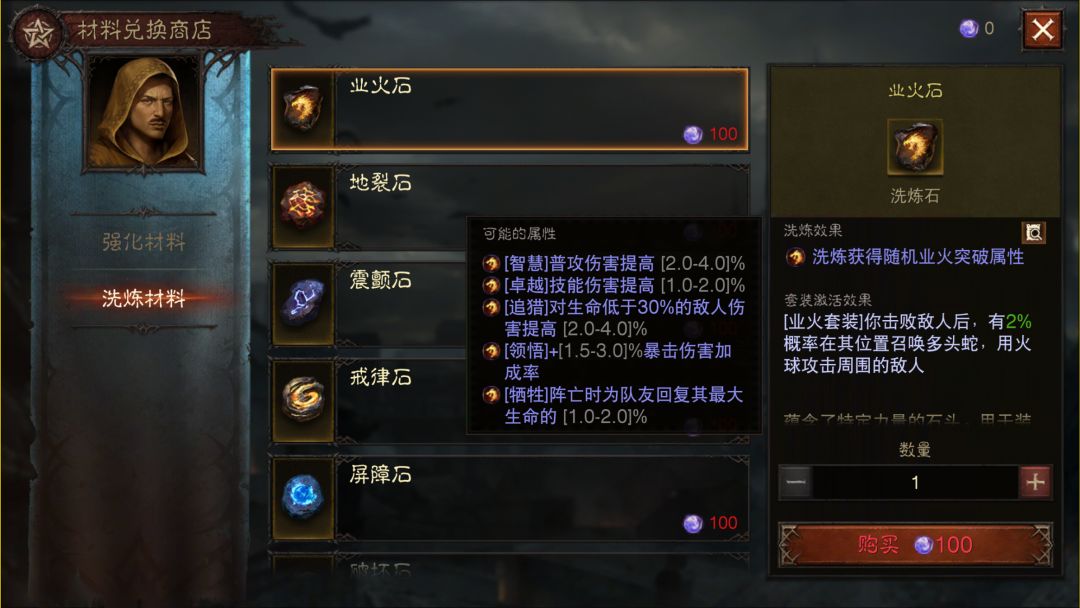 比如业火石的洗炼是触发召唤多头蛇攻击