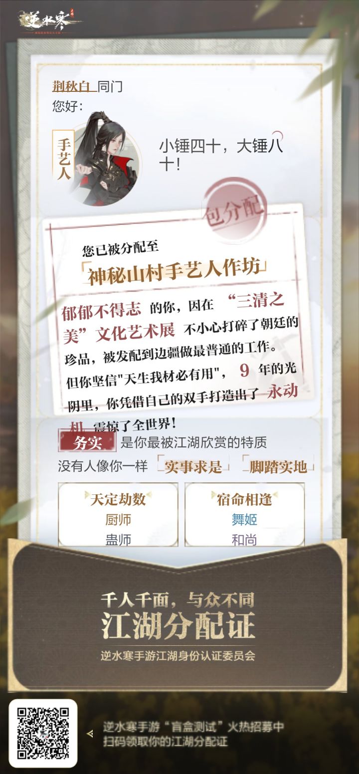 郁郁不得志的你,因在“三清之美”文化艺术展不小心打碎了朝廷的珍品,被发配到边疆做最普通的工作。但你坚信”天生我材必有用”,9年的光阴里,你凭借自己的双手打造出了永动机震惊了全世界!