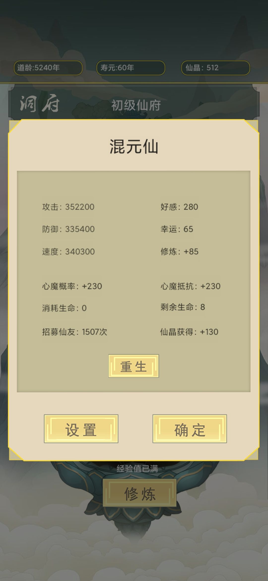 花了5个多小时通关。。。。真就无脑挂机憋。。。优先刷成就,刷完成就直接飞升就好了,飞升后还是直接怼历练刷神器。刷成就,刷完除了解救成就外的以后 直接开始 升到顶级,洞府也不用升直接炼器就好,刷完属性,直接解救完成。。。没了,我这是有多无聊才直接怼完哦。。。。。。。