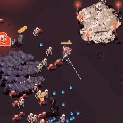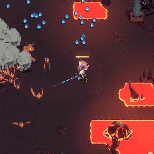 香槟海浪:角色会向虚线方向连续发射3发软木塞,3发炮弹都具有高射速,高伤害和击退效果。发射过程中人物也会受到3次连续的后座力。发射后会在地图上留下一大滩香槟浪潮,并对触碰到的敌人造成伤害