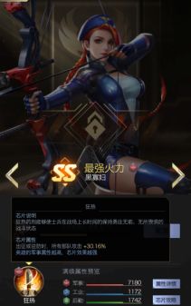 点评:军事型英雄,搭配狙击属性加成芯片,可以极大的的提高狙击兵的伤害输出。狙击兵攻击56.40%+10.58+140.44%部队超越10万-75万的最高伤害,号称史上最强狙击王者。
