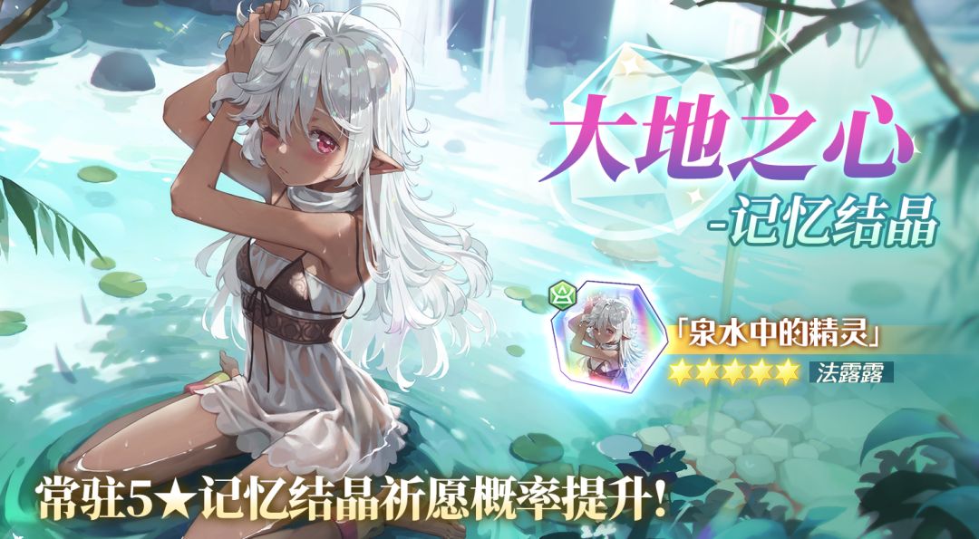 「大地之心-记忆结晶」常驻结晶祈愿即将开启,活动期间内,常驻5★记忆结晶「泉水中的精灵」的祈愿获取概率会大幅提高!