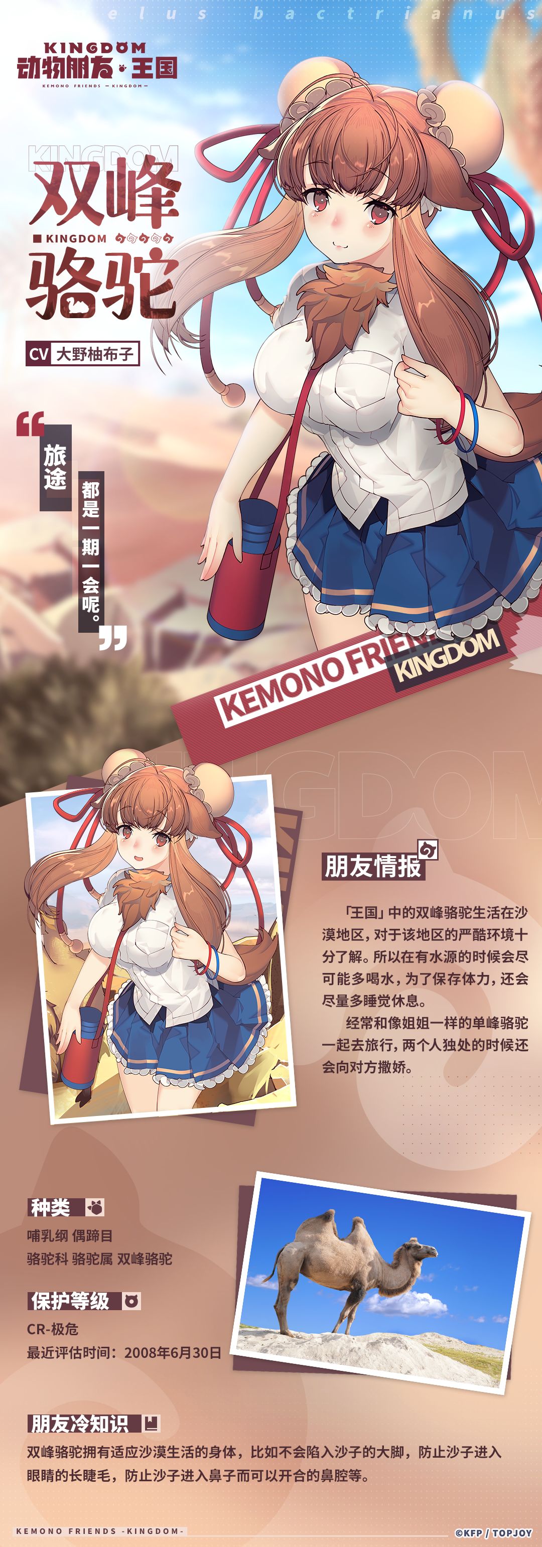 “我是双峰骆驼~我和小单峰正在到处旅行~为了找到能舒服睡觉的地方,今天也要努力呢~”