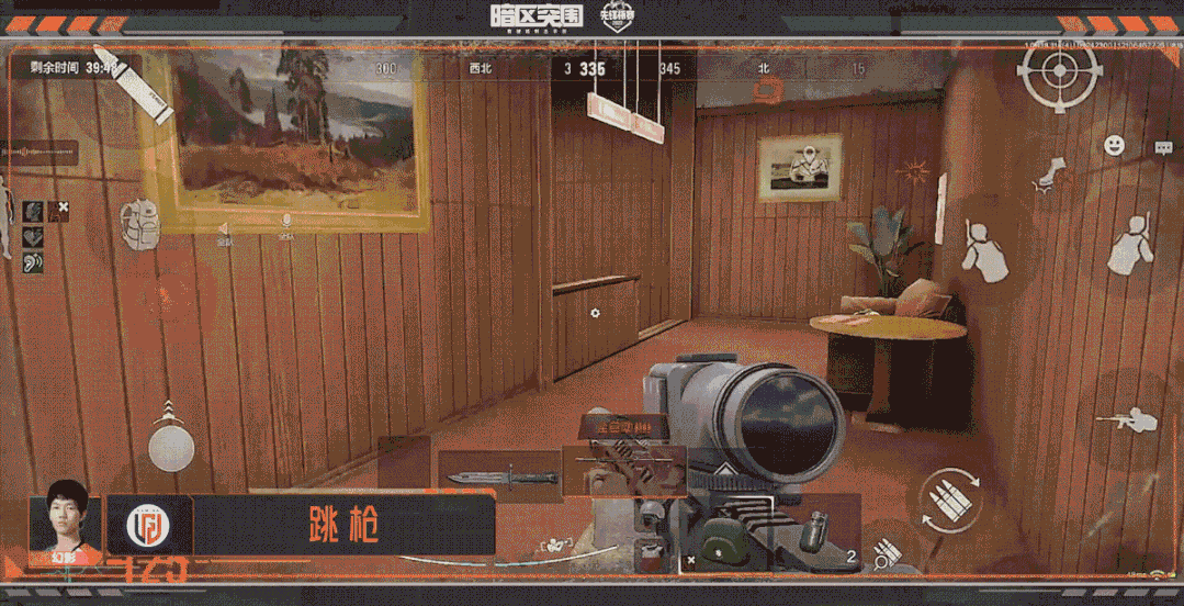 操作细节:跳枪一定要在奔跑状态下,从敌人视野外提前起跳,调整好自己的预瞄点进行射击,最后在敌人来不及反应时消灭敌人。