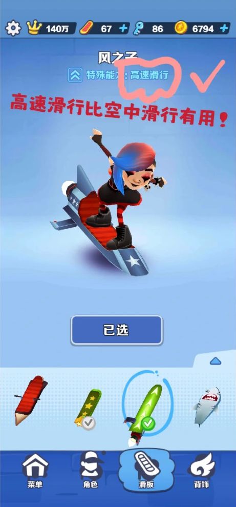 分为①日常刷分破纪录②分数赛③道具赛教程①日常破纪录储备钥匙和复活宝物“忍者纹章”如p2,在不升级情况下可以免费复活一次,推荐万能滑板八万金币-风之子,不需要攒很多钥匙就能加速前进,多用滑板一!