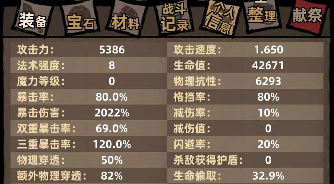 三重暴击 双重暴击 暴击率 物理系按梯度堆叠