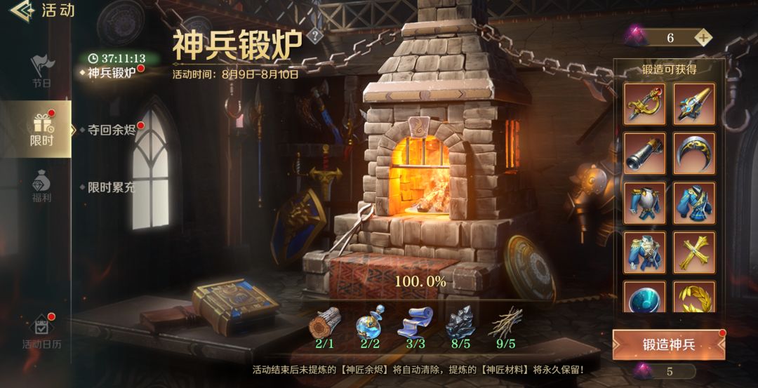 并且在活动神兵锻造中,有几率获取完整的装备