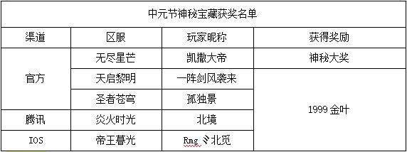 《世界OL》中元节神秘宝藏获奖名单