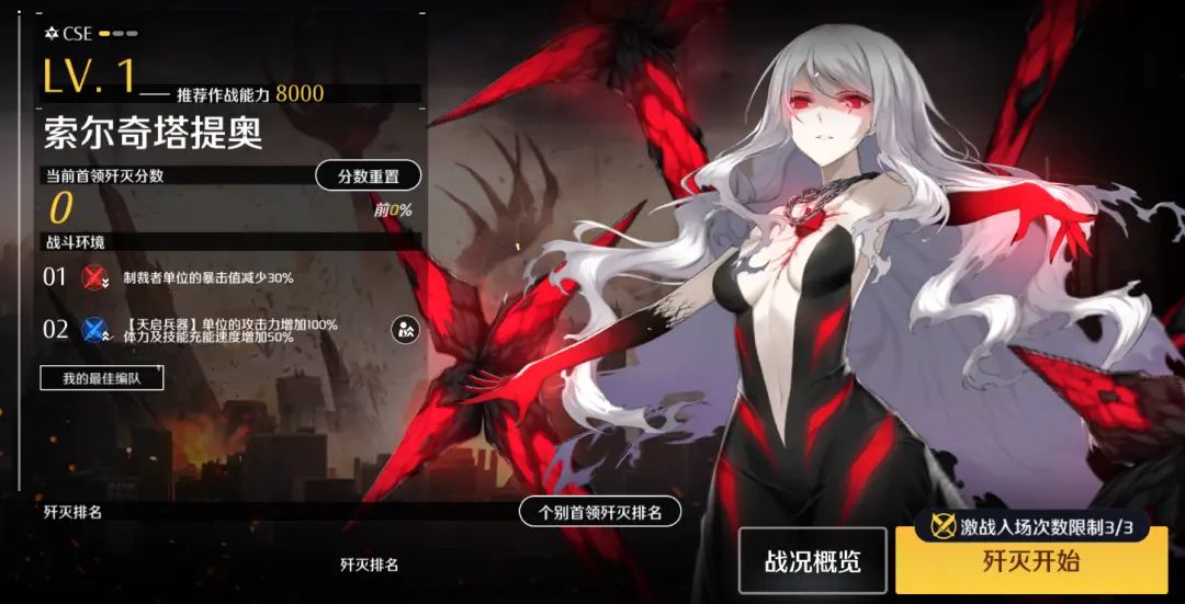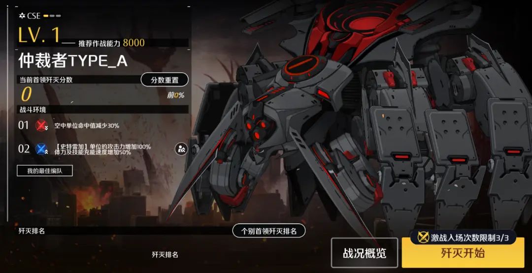 激战支援第16赛季将在本周四更新维护后开放。本赛季BOSS“仲裁者TYPE_A”会使我方空中单位的命中值降低30%,BOSS“索尔奇塔提奥”的挑战中,我方出击的【天启兵器】团队单位将得到攻击力、体力、技能充能速度的不同程度的加成。老板可根据作战限制条件,提前部署作战方案。