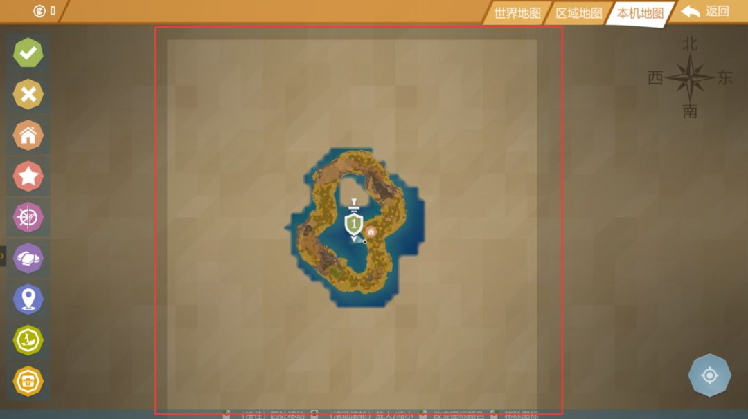 想要出海巡航,就不得不注意右上角显示的“本机地图、区域地图、世界地图”分类。同时,还要注意识别“本机地图”的区域界限位置。如图所示,小艾用红色线框圈起来的位置附近就是本机地图的界限处,一明一暗的亮度辨识度非常高。