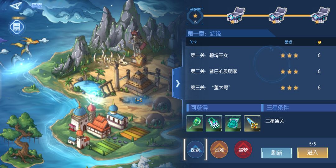 总有8章,每章6关普通,3关困难,可以刷角色进阶材料,经验水和金币。体力倾销地!