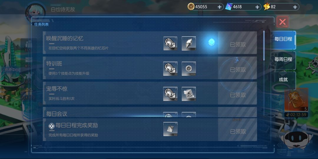把里面全部做完,有抽卡奖励和大把经验。基本上里面做完了,就可以下线了。当然体力有多记得去刷副本。