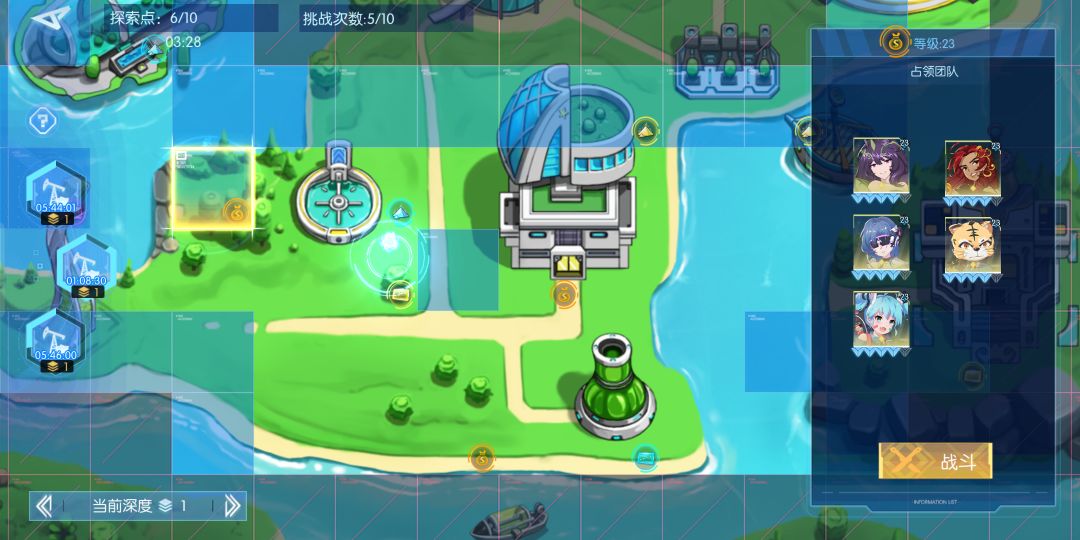 玩家可以打下这些方格,有些里面有资源点 可以和其他玩家抢占,定时收取。不要白不要!