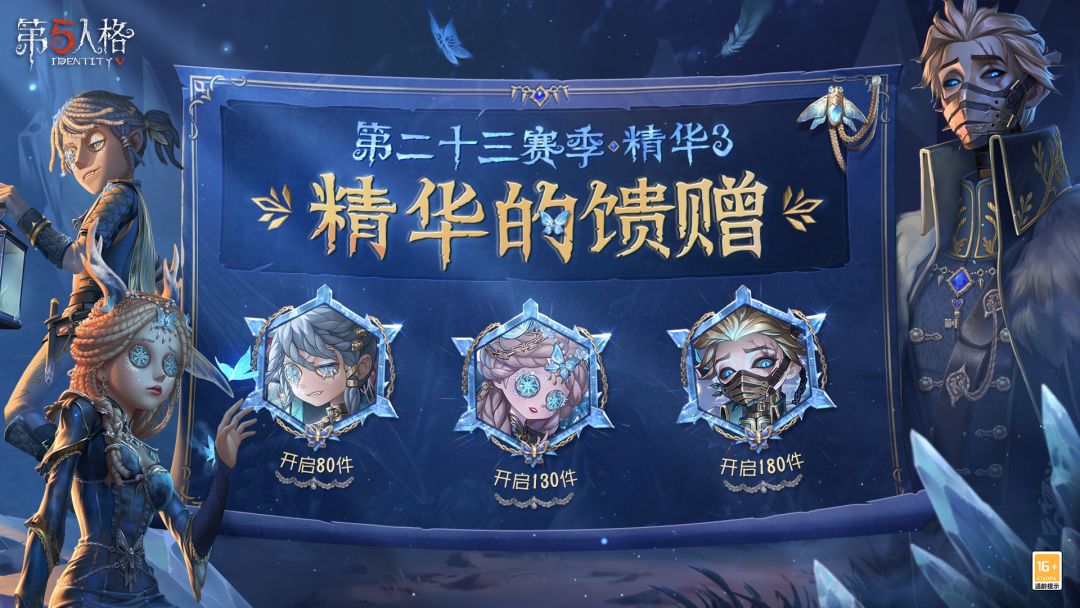 当【第二十三赛季·精华3】的抽取次数达到80/130/180次时,侦探们将分别额外获得【头像】“囚徒”-冬蝉/【头像】祭司-冰中蝶/【头像】隐士-典狱长~