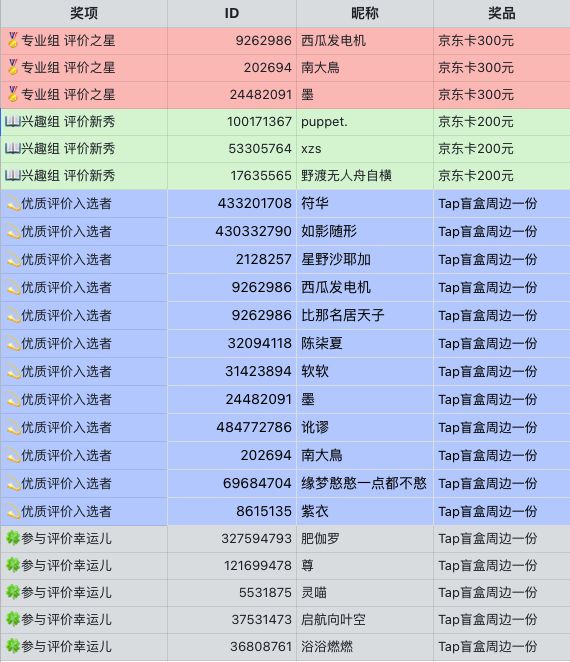 📖兴趣组 - 评价具有易读性,符合礼仪标准,且有鲜明的态度,通过点评/攻略/经历/剧情等方面的输出,对其它玩家了解游戏有一定帮助。