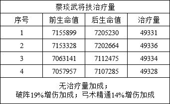 无增伤时单次技能的治疗量平均为48535,双增伤战法时单次技能的治疗量平均为49332,治疗量增加1.64%,远低于战法增伤比例,该治疗量增幅为战法精通等级导致,故治疗技能不受增伤加成影响。